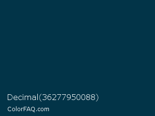 Decimal 36277950088 Color is a very dark blue color and the nearest color is Blue Whale #042e4c. Hex code #023448 and RGB value is rgb(2,52,72). In RGB color space, this color is composed of 1% red, 20% green, 28% blue, In CMYK color space, this color is composed of 97% cyan, 28% magenta, 0% yellow , 72% black , In HSL color space, this color has a hue angle of 197° , 95% saturation and 15% lightness.