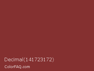 Decimal 141723172 Color is a normal red color and the nearest color is Burnt Umber #8a3324. Hex code #853030 and RGB value is rgb(133,48,48). In RGB color space, this color is composed of 52% red, 19% green, 19% blue, In CMYK color space, this color is composed of 0% cyan, 64% magenta, 64% yellow , 48% black , In HSL color space, this color has a hue angle of 0° , 47% saturation and 35% lightness.