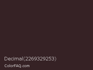 Decimal 2269329253 Color is a very dark red color and the nearest color is Jon #3b1f1f. Hex code #362225 and RGB value is rgb(54,34,37). In RGB color space, this color is composed of 21% red, 13% green, 15% blue, In CMYK color space, this color is composed of 0% cyan, 37% magenta, 31% yellow , 79% black , In HSL color space, this color has a hue angle of 351° , 23% saturation and 17% lightness.