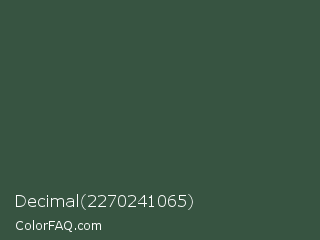 Decimal 2270241065 Color is a dark green color and the nearest color is Tom Thumb #3f583b. Hex code #375441 and RGB value is rgb(55,84,65). In RGB color space, this color is composed of 22% red, 33% green, 25% blue, In CMYK color space, this color is composed of 35% cyan, 0% magenta, 23% yellow , 67% black , In HSL color space, this color has a hue angle of 141° , 21% saturation and 27% lightness.
