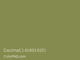 Decimal 141891920 Color is a normal yellow color and the nearest color is Dark Tan #918151. Hex code #858b4e and RGB value is rgb(133,139,78). In RGB color space, this color is composed of 52% red, 55% green, 31% blue, In CMYK color space, this color is composed of 4% cyan, 0% magenta, 44% yellow , 45% black , In HSL color space, this color has a hue angle of 66° , 28% saturation and 43% lightness.