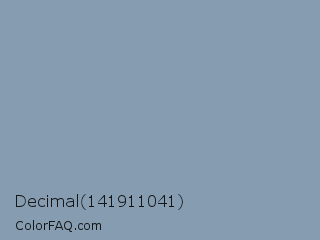 Decimal 141911041 Color is a light blue color and the nearest color is Bali Hai #859faf. Hex code #859cb1 and RGB value is rgb(133,156,177). In RGB color space, this color is composed of 52% red, 61% green, 69% blue, In CMYK color space, this color is composed of 25% cyan, 12% magenta, 0% yellow , 31% black , In HSL color space, this color has a hue angle of 209° , 22% saturation and 61% lightness.