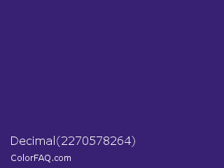 Decimal 2270578264 Color is a dark indigo color and the nearest color is Meteorite #3c1f76. Hex code #382172 and RGB value is rgb(56,33,114). In RGB color space, this color is composed of 22% red, 13% green, 45% blue, In CMYK color space, this color is composed of 51% cyan, 71% magenta, 0% yellow , 55% black , In HSL color space, this color has a hue angle of 257° , 55% saturation and 29% lightness.