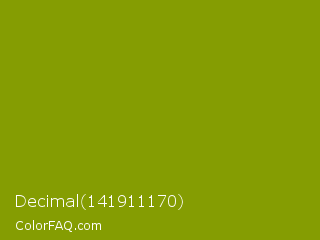 Decimal 141911170 Color is a normal yellow color and the nearest color is Limeade #6f9d02. Hex code #859d02 and RGB value is rgb(133,157,2). In RGB color space, this color is composed of 52% red, 62% green, 1% blue, In CMYK color space, this color is composed of 15% cyan, 0% magenta, 99% yellow , 38% black , In HSL color space, this color has a hue angle of 69° , 97% saturation and 31% lightness.