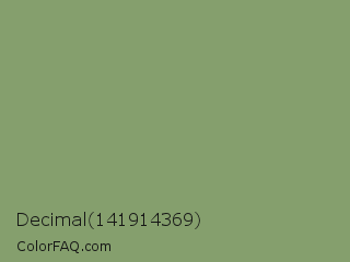 Decimal 141914369 Color is a normal green color and the nearest color is Asparagus #87a96b. Hex code #859f6d and RGB value is rgb(133,159,109). In RGB color space, this color is composed of 52% red, 62% green, 43% blue, In CMYK color space, this color is composed of 16% cyan, 0% magenta, 31% yellow , 38% black , In HSL color space, this color has a hue angle of 91° , 21% saturation and 53% lightness.