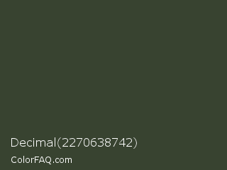 Decimal 2270638742 Color is a dark green color and the nearest color is Kombu Green #354230. Hex code #384330 and RGB value is rgb(56,67,48). In RGB color space, this color is composed of 22% red, 26% green, 19% blue, In CMYK color space, this color is composed of 16% cyan, 0% magenta, 28% yellow , 74% black , In HSL color space, this color has a hue angle of 95° , 17% saturation and 23% lightness.