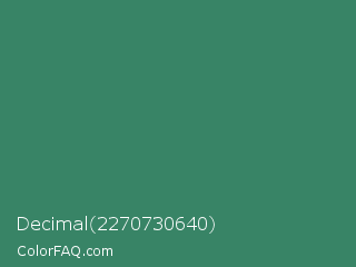 Decimal 2270730640 Color is a normal green color and the nearest color is Viridian #40826d. Hex code #388466 and RGB value is rgb(56,132,102). In RGB color space, this color is composed of 22% red, 52% green, 40% blue, In CMYK color space, this color is composed of 58% cyan, 0% magenta, 23% yellow , 48% black , In HSL color space, this color has a hue angle of 156° , 40% saturation and 37% lightness.