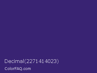 Decimal 2271414023 Color is a dark indigo color and the nearest color is Meteorite #3c1f76. Hex code #392373 and RGB value is rgb(57,35,115). In RGB color space, this color is composed of 22% red, 14% green, 45% blue, In CMYK color space, this color is composed of 50% cyan, 70% magenta, 0% yellow , 55% black , In HSL color space, this color has a hue angle of 257° , 53% saturation and 29% lightness.