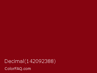 Decimal 142092388 Color is a dark red color and the nearest color is Red Devil #860111. Hex code #860410 and RGB value is rgb(134,4,16). In RGB color space, this color is composed of 53% red, 2% green, 6% blue, In CMYK color space, this color is composed of 0% cyan, 97% magenta, 88% yellow , 47% black , In HSL color space, this color has a hue angle of 354° , 94% saturation and 27% lightness.