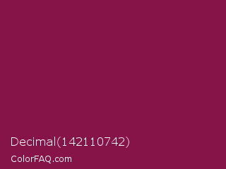 Decimal 142110742 Color is a dark rose color and the nearest color is Disco #871550. Hex code #861448 and RGB value is rgb(134,20,72). In RGB color space, this color is composed of 53% red, 8% green, 28% blue, In CMYK color space, this color is composed of 0% cyan, 85% magenta, 46% yellow , 47% black , In HSL color space, this color has a hue angle of 333° , 74% saturation and 30% lightness.