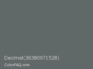 Decimal 36380971528 Color is a normal cyan color and the nearest color is Corduroy #606e68. Hex code #616968 and RGB value is rgb(97,105,104). In RGB color space, this color is composed of 38% red, 41% green, 41% blue, In CMYK color space, this color is composed of 8% cyan, 0% magenta, 1% yellow , 59% black , In HSL color space, this color has a hue angle of 173° , 4% saturation and 40% lightness.