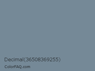Decimal 36508369255 Color is a normal blue color and the nearest color is Light Slate Gray #778899. Hex code #758997 and RGB value is rgb(117,137,151). In RGB color space, this color is composed of 46% red, 54% green, 59% blue, In CMYK color space, this color is composed of 23% cyan, 9% magenta, 0% yellow , 41% black , In HSL color space, this color has a hue angle of 205° , 14% saturation and 53% lightness.