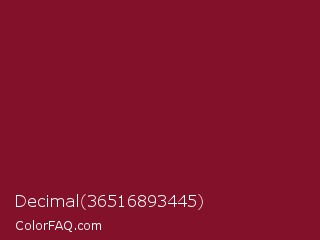Decimal 36516893445 Color is a dark red color and the nearest color is Merlot #831923. Hex code #821129 and RGB value is rgb(130,17,41). In RGB color space, this color is composed of 51% red, 7% green, 16% blue, In CMYK color space, this color is composed of 0% cyan, 87% magenta, 68% yellow , 49% black , In HSL color space, this color has a hue angle of 347° , 77% saturation and 29% lightness.