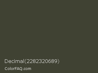Decimal 2282320689 Color is a dark yellow color and the nearest color is Armadillo #433e37. Hex code #404233 and RGB value is rgb(64,66,51). In RGB color space, this color is composed of 25% red, 26% green, 20% blue, In CMYK color space, this color is composed of 3% cyan, 0% magenta, 23% yellow , 74% black , In HSL color space, this color has a hue angle of 68° , 13% saturation and 23% lightness.