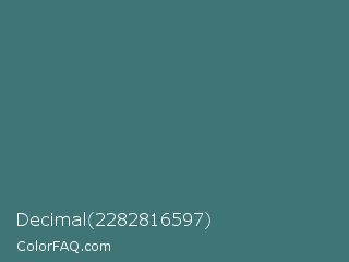 Decimal 2282816597 Color is a normal cyan color and the nearest color is Faded Jade #427977. Hex code #407577 and RGB value is rgb(64,117,119). In RGB color space, this color is composed of 25% red, 46% green, 47% blue, In CMYK color space, this color is composed of 46% cyan, 2% magenta, 0% yellow , 53% black , In HSL color space, this color has a hue angle of 182° , 30% saturation and 36% lightness.