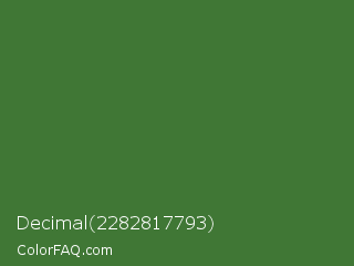 Decimal 2282817793 Color is a normal green color and the nearest color is Fern Green #4f7942. Hex code #407735 and RGB value is rgb(64,119,53). In RGB color space, this color is composed of 25% red, 47% green, 21% blue, In CMYK color space, this color is composed of 46% cyan, 0% magenta, 55% yellow , 53% black , In HSL color space, this color has a hue angle of 110° , 38% saturation and 34% lightness.