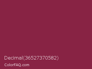 Decimal 36527370582 Color is a normal rose color and the nearest color is Disco #871550. Hex code #882344 and RGB value is rgb(136,35,68). In RGB color space, this color is composed of 53% red, 14% green, 27% blue, In CMYK color space, this color is composed of 0% cyan, 74% magenta, 50% yellow , 47% black , In HSL color space, this color has a hue angle of 340° , 59% saturation and 34% lightness.