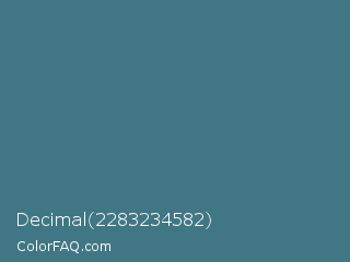 Decimal 2283234582 Color is a normal cyan color and the nearest color is Bismark #497183. Hex code #417784 and RGB value is rgb(65,119,132). In RGB color space, this color is composed of 25% red, 47% green, 52% blue, In CMYK color space, this color is composed of 51% cyan, 10% magenta, 0% yellow , 48% black , In HSL color space, this color has a hue angle of 192° , 34% saturation and 39% lightness.