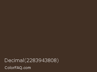 Decimal 2283943808 Color is a very dark orange color and the nearest color is Iroko #433120. Hex code #423024 and RGB value is rgb(66,48,36). In RGB color space, this color is composed of 26% red, 19% green, 14% blue, In CMYK color space, this color is composed of 0% cyan, 27% magenta, 45% yellow , 74% black , In HSL color space, this color has a hue angle of 24° , 29% saturation and 20% lightness.