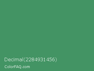 Decimal 2284931456 Color is a normal green color and the nearest color is Fruit Salad #4f9d5d. Hex code #439464 and RGB value is rgb(67,148,100). In RGB color space, this color is composed of 26% red, 58% green, 39% blue, In CMYK color space, this color is composed of 55% cyan, 0% magenta, 32% yellow , 42% black , In HSL color space, this color has a hue angle of 144° , 38% saturation and 42% lightness.