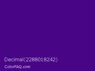 Decimal 2288018242 Color is a dark purple color and the nearest color is Pigment Indigo #4b0082. Hex code #480686 and RGB value is rgb(72,6,134). In RGB color space, this color is composed of 28% red, 2% green, 53% blue, In CMYK color space, this color is composed of 46% cyan, 96% magenta, 0% yellow , 47% black , In HSL color space, this color has a hue angle of 271° , 91% saturation and 27% lightness.