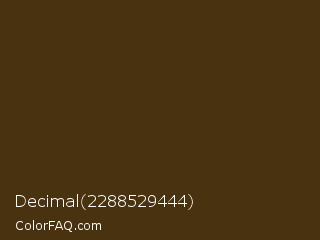 Decimal 2288529444 Color is a very dark orange color and the nearest color is Metallic Bronze #49371b. Hex code #493210 and RGB value is rgb(73,50,16). In RGB color space, this color is composed of 29% red, 20% green, 6% blue, In CMYK color space, this color is composed of 0% cyan, 32% magenta, 78% yellow , 71% black , In HSL color space, this color has a hue angle of 36° , 64% saturation and 17% lightness.