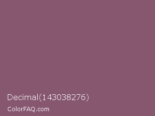 Decimal 143038276 Color is a normal rose color and the nearest color is Mauve Taupe #915f6d. Hex code #875770 and RGB value is rgb(135,87,112). In RGB color space, this color is composed of 53% red, 34% green, 44% blue, In CMYK color space, this color is composed of 0% cyan, 36% magenta, 17% yellow , 47% black , In HSL color space, this color has a hue angle of 329° , 22% saturation and 44% lightness.