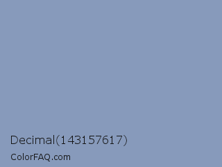 Decimal 143157617 Color is a light blue color and the nearest color is Bali Hai #859faf. Hex code #879abb and RGB value is rgb(135,154,187). In RGB color space, this color is composed of 53% red, 60% green, 73% blue, In CMYK color space, this color is composed of 28% cyan, 18% magenta, 0% yellow , 27% black , In HSL color space, this color has a hue angle of 218° , 28% saturation and 63% lightness.