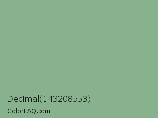 Decimal 143208553 Color is a light green color and the nearest color is Dark Sea Green #8fbc8f. Hex code #87b28d and RGB value is rgb(135,178,141). In RGB color space, this color is composed of 53% red, 70% green, 55% blue, In CMYK color space, this color is composed of 24% cyan, 0% magenta, 21% yellow , 30% black , In HSL color space, this color has a hue angle of 128° , 22% saturation and 61% lightness.