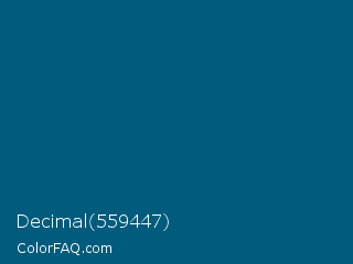 Decimal 559447 Color is a dark blue color and the nearest color is Orient #015e85. Hex code #015b7d and RGB value is rgb(1,91,125). In RGB color space, this color is composed of 0% red, 36% green, 49% blue, In CMYK color space, this color is composed of 99% cyan, 27% magenta, 0% yellow , 51% black , In HSL color space, this color has a hue angle of 196° , 98% saturation and 25% lightness.