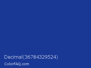 Decimal 36784329524 Color is a normal blue color and the nearest color is Torea Bay #0f2d9e. Hex code #193896 and RGB value is rgb(25,56,150). In RGB color space, this color is composed of 10% red, 22% green, 59% blue, In CMYK color space, this color is composed of 83% cyan, 63% magenta, 0% yellow , 41% black , In HSL color space, this color has a hue angle of 225° , 71% saturation and 34% lightness.