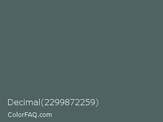 Decimal 2299872259 Color is a normal cyan color and the nearest color is Stormcloud #4f666a. Hex code #506363 and RGB value is rgb(80,99,99). In RGB color space, this color is composed of 31% red, 39% green, 39% blue, In CMYK color space, this color is composed of 19% cyan, 0% magenta, 0% yellow , 61% black , In HSL color space, this color has a hue angle of 180° , 11% saturation and 35% lightness.