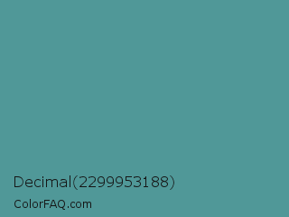 Decimal 2299953188 Color is a normal cyan color and the nearest color is Breaker Bay #5da19f. Hex code #509898 and RGB value is rgb(80,152,152). In RGB color space, this color is composed of 31% red, 60% green, 60% blue, In CMYK color space, this color is composed of 47% cyan, 0% magenta, 0% yellow , 40% black , In HSL color space, this color has a hue angle of 180° , 31% saturation and 45% lightness.
