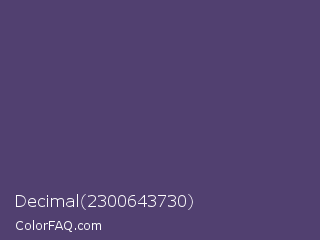 Decimal 2300643730 Color is a normal violet color and the nearest color is Cyber Grape #58427c. Hex code #514070 and RGB value is rgb(81,64,112). In RGB color space, this color is composed of 32% red, 25% green, 44% blue, In CMYK color space, this color is composed of 28% cyan, 43% magenta, 0% yellow , 56% black , In HSL color space, this color has a hue angle of 261° , 27% saturation and 35% lightness.