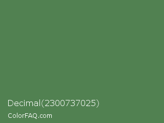 Decimal 2300737025 Color is a normal green color and the nearest color is Hippie Green #53824b. Hex code #518151 and RGB value is rgb(81,129,81). In RGB color space, this color is composed of 32% red, 51% green, 32% blue, In CMYK color space, this color is composed of 37% cyan, 0% magenta, 37% yellow , 49% black , In HSL color space, this color has a hue angle of 120° , 23% saturation and 41% lightness.
