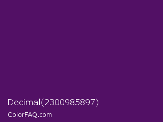 Decimal 2300985897 Color is a dark purple color and the nearest color is Honey Flower #4f1c70. Hex code #521065 and RGB value is rgb(82,16,101). In RGB color space, this color is composed of 32% red, 6% green, 40% blue, In CMYK color space, this color is composed of 19% cyan, 84% magenta, 0% yellow , 60% black , In HSL color space, this color has a hue angle of 287° , 73% saturation and 23% lightness.