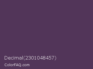 Decimal 2301048457 Color is a dark purple color and the nearest color is Voodoo #533455. Hex code #523559 and RGB value is rgb(82,53,89). In RGB color space, this color is composed of 32% red, 21% green, 35% blue, In CMYK color space, this color is composed of 8% cyan, 40% magenta, 0% yellow , 65% black , In HSL color space, this color has a hue angle of 288° , 25% saturation and 28% lightness.