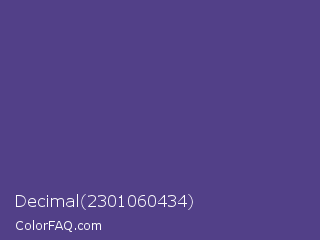Decimal 2301060434 Color is a normal indigo color and the nearest color is Victoria #534491. Hex code #524088 and RGB value is rgb(82,64,136). In RGB color space, this color is composed of 32% red, 25% green, 53% blue, In CMYK color space, this color is composed of 40% cyan, 53% magenta, 0% yellow , 47% black , In HSL color space, this color has a hue angle of 255° , 36% saturation and 39% lightness.
