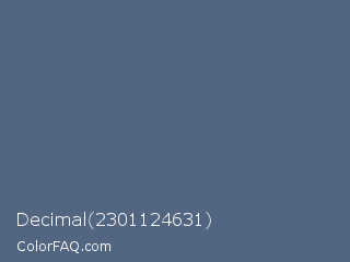 Decimal 2301124631 Color is a normal blue color and the nearest color is Paynes Grey #536878. Hex code #526581 and RGB value is rgb(82,101,129). In RGB color space, this color is composed of 32% red, 40% green, 51% blue, In CMYK color space, this color is composed of 36% cyan, 22% magenta, 0% yellow , 49% black , In HSL color space, this color has a hue angle of 216° , 22% saturation and 41% lightness.