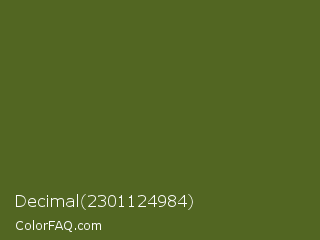 Decimal 2301124984 Color is a dark lime color and the nearest color is Dark Moss Green #4a5d23. Hex code #526622 and RGB value is rgb(82,102,34). In RGB color space, this color is composed of 32% red, 40% green, 13% blue, In CMYK color space, this color is composed of 20% cyan, 0% magenta, 67% yellow , 60% black , In HSL color space, this color has a hue angle of 78° , 50% saturation and 27% lightness.