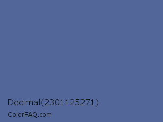 Decimal 2301125271 Color is a normal blue color and the nearest color is UCLA Blue #536895. Hex code #526699 and RGB value is rgb(82,102,153). In RGB color space, this color is composed of 32% red, 40% green, 60% blue, In CMYK color space, this color is composed of 46% cyan, 33% magenta, 0% yellow , 40% black , In HSL color space, this color has a hue angle of 223° , 30% saturation and 46% lightness.