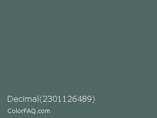 Decimal 2301126489 Color is a normal cyan color and the nearest color is Stormcloud #4f666a. Hex code #526867 and RGB value is rgb(82,104,103). In RGB color space, this color is composed of 32% red, 41% green, 40% blue, In CMYK color space, this color is composed of 21% cyan, 0% magenta, 1% yellow , 59% black , In HSL color space, this color has a hue angle of 177° , 12% saturation and 36% lightness.