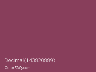 Decimal 143820889 Color is a normal rose color and the nearest color is Deep Ruby #843f5b. Hex code #883e5b and RGB value is rgb(136,62,91). In RGB color space, this color is composed of 53% red, 24% green, 36% blue, In CMYK color space, this color is composed of 0% cyan, 54% magenta, 33% yellow , 47% black , In HSL color space, this color has a hue angle of 336° , 37% saturation and 39% lightness.