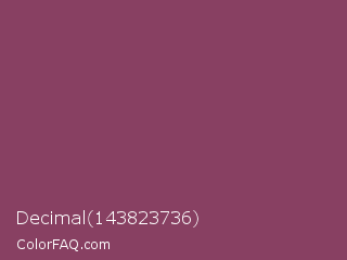 Decimal 143823736 Color is a normal rose color and the nearest color is Cannon Pink #894367. Hex code #884062 and RGB value is rgb(136,64,98). In RGB color space, this color is composed of 53% red, 25% green, 38% blue, In CMYK color space, this color is composed of 0% cyan, 53% magenta, 28% yellow , 47% black , In HSL color space, this color has a hue angle of 332° , 36% saturation and 39% lightness.