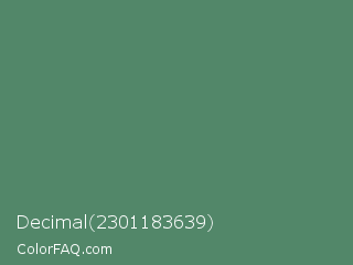 Decimal 2301183639 Color is a normal green color and the nearest color is Spring Leaves #578363. Hex code #528769 and RGB value is rgb(82,135,105). In RGB color space, this color is composed of 32% red, 53% green, 41% blue, In CMYK color space, this color is composed of 39% cyan, 0% magenta, 22% yellow , 47% black , In HSL color space, this color has a hue angle of 146° , 24% saturation and 43% lightness.