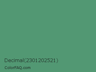 Decimal 2301202521 Color is a normal green color and the nearest color is Wintergreen Dream #56887d. Hex code #529873 and RGB value is rgb(82,152,115). In RGB color space, this color is composed of 32% red, 60% green, 45% blue, In CMYK color space, this color is composed of 46% cyan, 0% magenta, 24% yellow , 40% black , In HSL color space, this color has a hue angle of 148° , 30% saturation and 46% lightness.