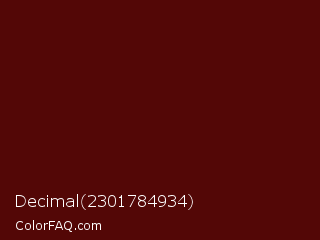 Decimal 2301784934 Color is a very dark red color and the nearest color is Mahogany #4e0606. Hex code #530706 and RGB value is rgb(83,7,6). In RGB color space, this color is composed of 33% red, 3% green, 2% blue, In CMYK color space, this color is composed of 0% cyan, 92% magenta, 93% yellow , 67% black , In HSL color space, this color has a hue angle of 1° , 87% saturation and 17% lightness.