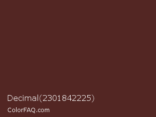 Decimal 2301842225 Color is a dark red color and the nearest color is Caput Mortuum #592720. Hex code #532623 and RGB value is rgb(83,38,35). In RGB color space, this color is composed of 33% red, 15% green, 14% blue, In CMYK color space, this color is composed of 0% cyan, 54% magenta, 58% yellow , 67% black , In HSL color space, this color has a hue angle of 4° , 41% saturation and 23% lightness.