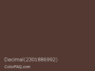 Decimal 2301886992 Color is a dark red color and the nearest color is Rock #4d3833. Hex code #533932 and RGB value is rgb(83,57,50). In RGB color space, this color is composed of 33% red, 22% green, 20% blue, In CMYK color space, this color is composed of 0% cyan, 31% magenta, 40% yellow , 67% black , In HSL color space, this color has a hue angle of 13° , 25% saturation and 26% lightness.