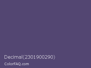 Decimal 2301900290 Color is a normal indigo color and the nearest color is Cyber Grape #58427c. Hex code #534672 and RGB value is rgb(83,70,114). In RGB color space, this color is composed of 33% red, 27% green, 45% blue, In CMYK color space, this color is composed of 27% cyan, 39% magenta, 0% yellow , 55% black , In HSL color space, this color has a hue angle of 258° , 24% saturation and 36% lightness.
